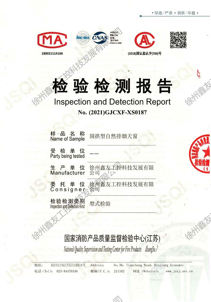 圓拱型電動排煙天窗檢測報告187